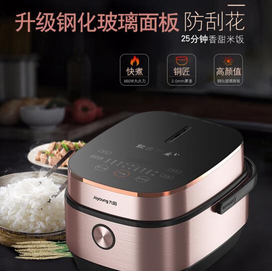 九阳电饭煲铜釜内胆4L钢化玻璃面板家用电饭锅智能预约 F-40FY5(4升)