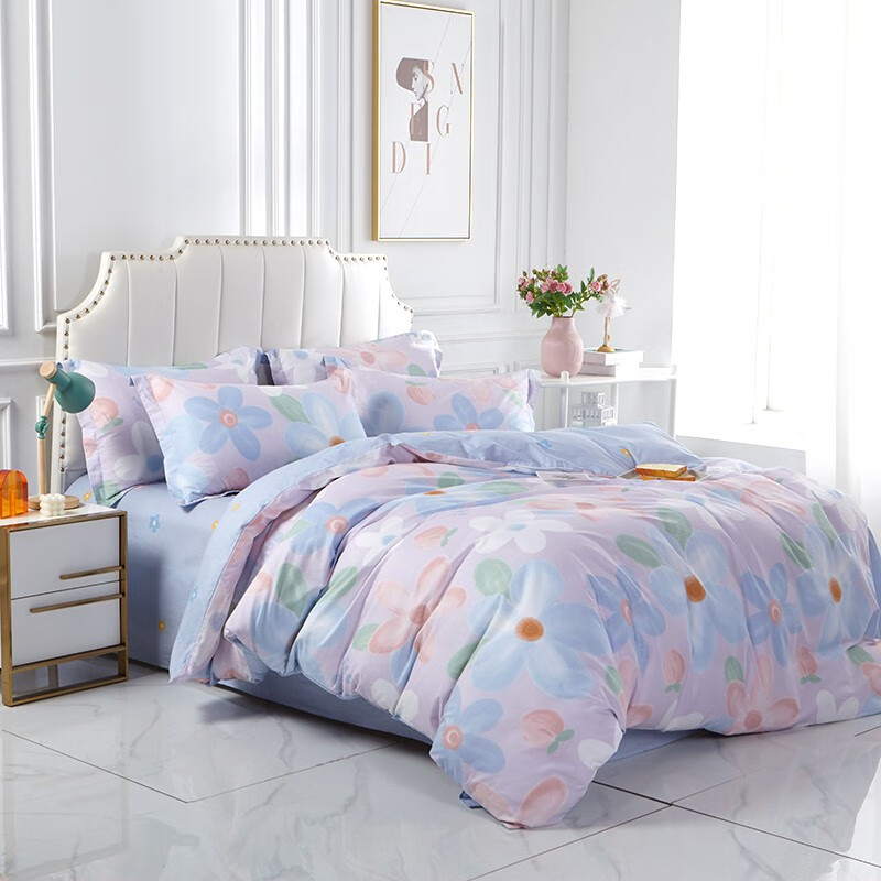 金丝莉纯棉小T套件小清新 被套200×230cm床单230×250cm枕套48×74cm×2
