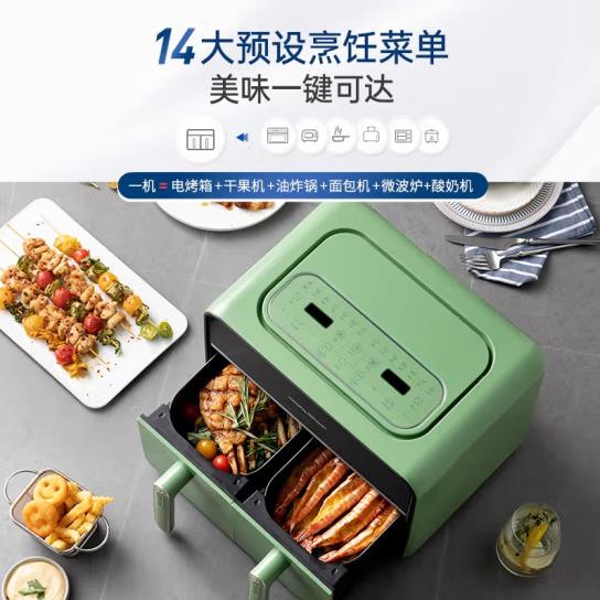 摩飞双拼桶双仓空气炸锅可视家用8升大容量薯条多功能MR8100 清新绿