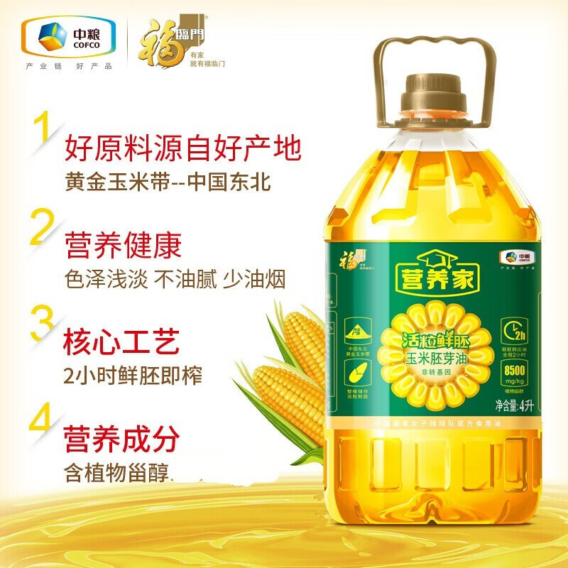 福临门 营养家非转基因活粒鲜胚玉米胚芽油4L